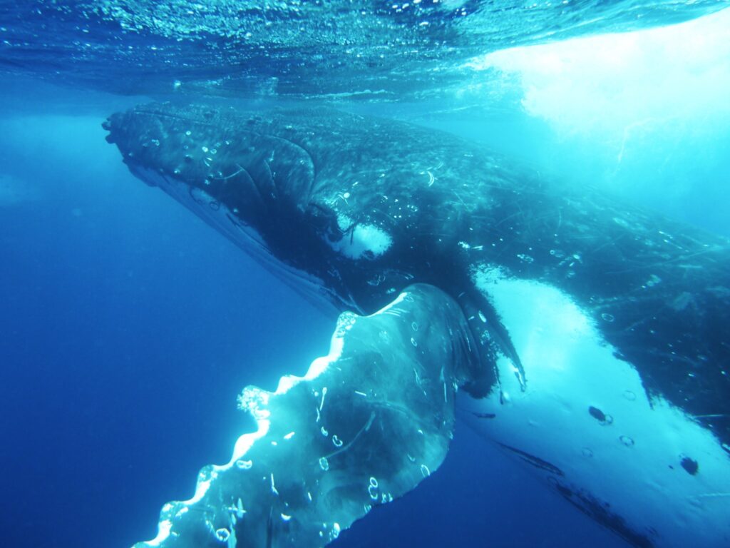 目視できるブローや尾びれ・他のボートの情報等でクジラを探し、スイム可能ならクジラに会えたら海に飛び込みます!ホエールスイム時の基本的なルールは下記の通りです。