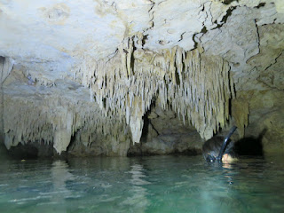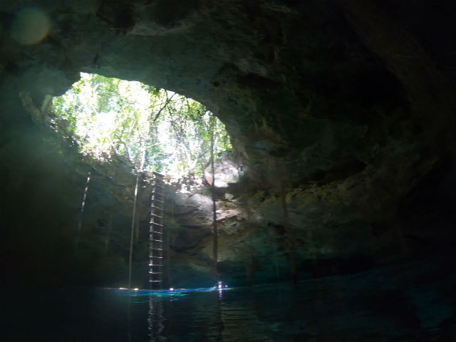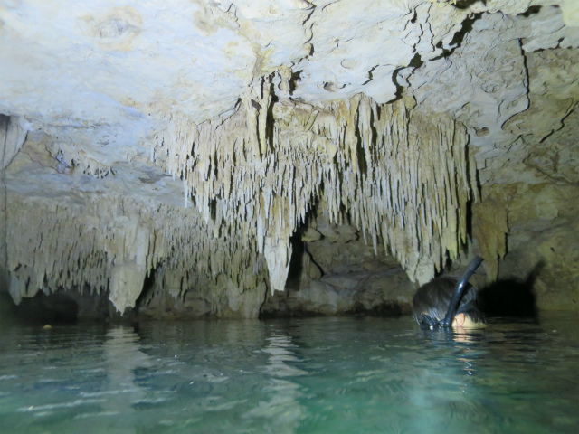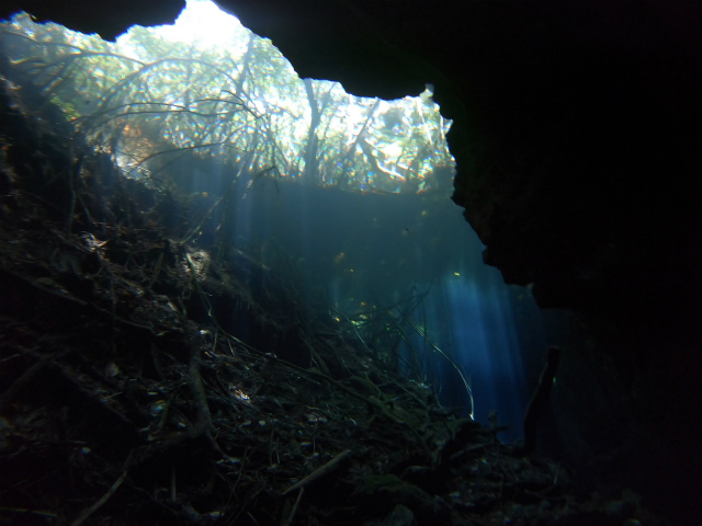 そして、私たちシュノーケルチームは、タージマハと繋がっているCenote Sagrado、サグラド(神聖という意味のスペイン語です)に行きました。サグラドはタージマハと地下で繋がっていて、ケーブダイビングでのみ潜れるセノーテです。もちろん私たちは地上を歩いて移動しましたが。