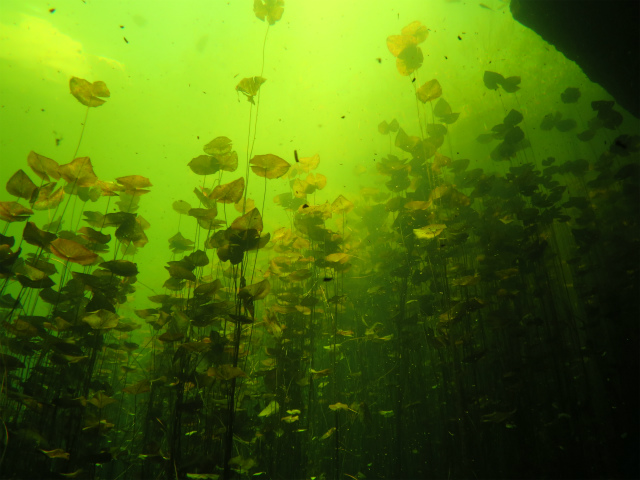 水面がすごい濁っていて、え、ここ潜るんですか???とよく聞かれますが、濁りの雲を抜けるとこんな世界が広がるんですよ。