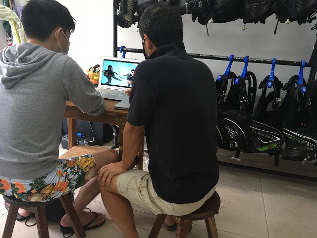 初日は学科講習とプール講習。ここでダイビングの知識、スキルを学びます。