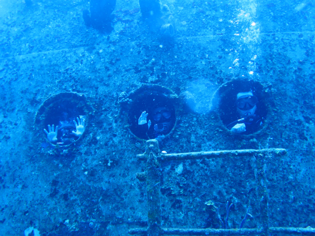 初めての沈船ダイビングでしたが、みなさん、ちゃーんとトイレにたどり着き用を足せたようです。笑。