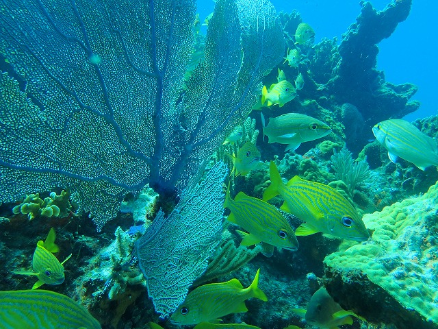 穴の中にいるたくさんのロブスターを紹介したり大きなバラクーダーに遭遇も。