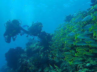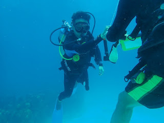 2人で仲良く魚の群れの中をかき分けたりと本当に体験ダイビングかな?と思うくらいの旦那様でした。