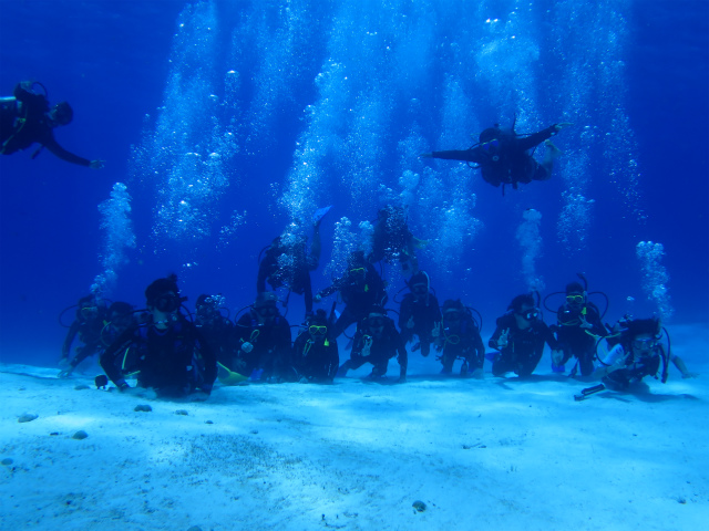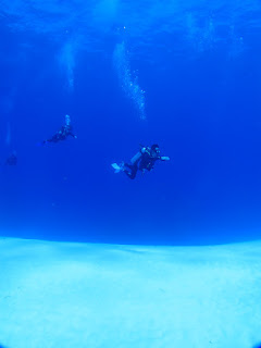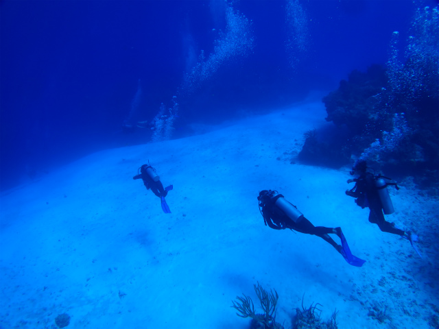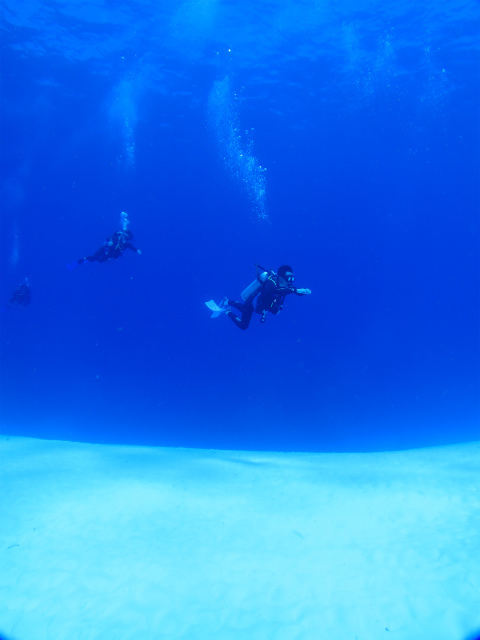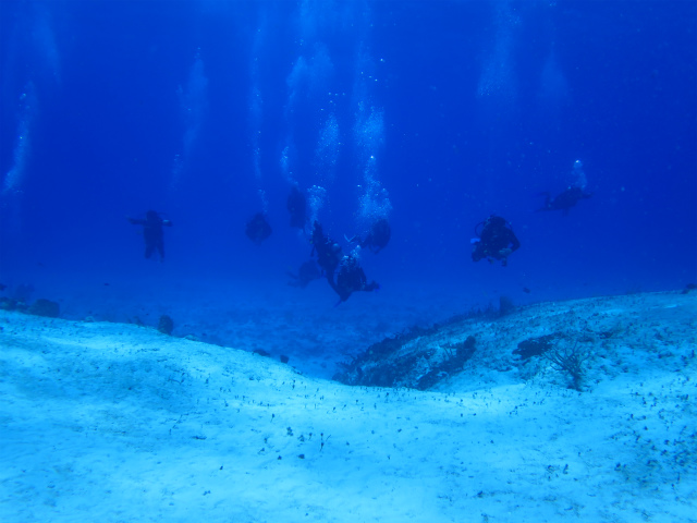 ダイバーの影が砂地に写るのが綺麗ですね。