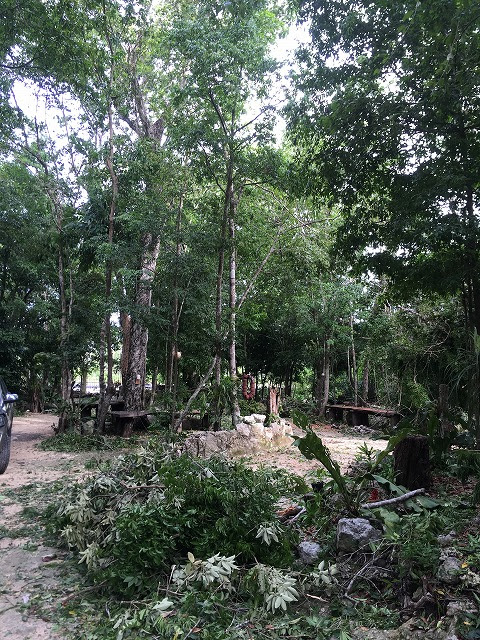 2本目のセノーテ「カーウォッシュ」に到着するとここでも皆さん折れた木や舞い散った葉っぱの掃除をしていました。